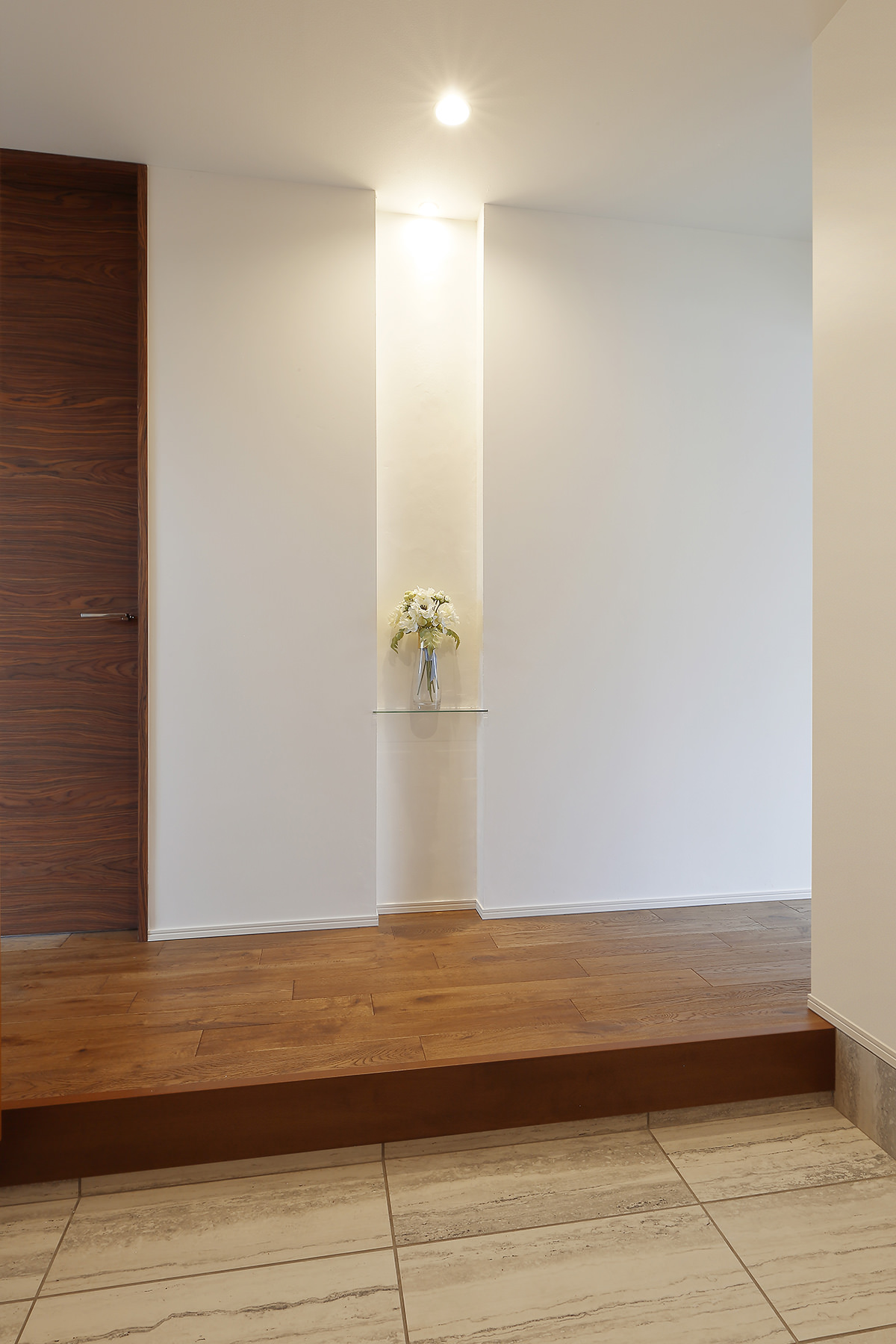 道路に面した玄関側は窓を少なくし、外部からの視線をカバー。