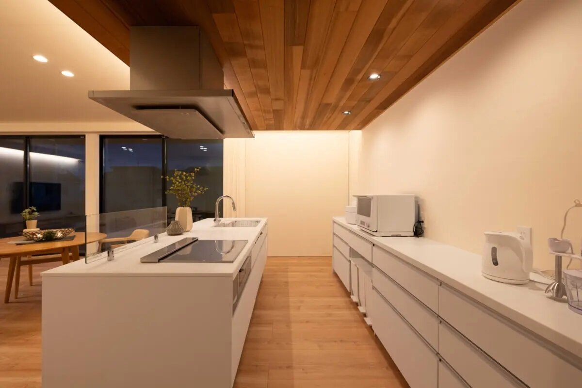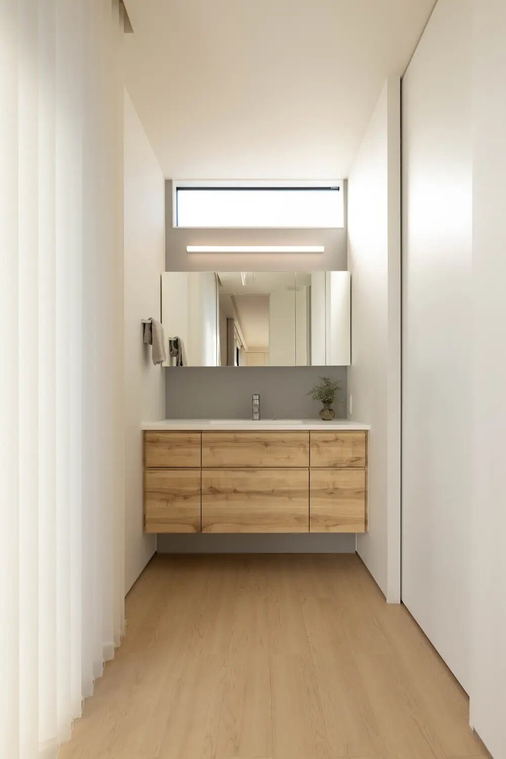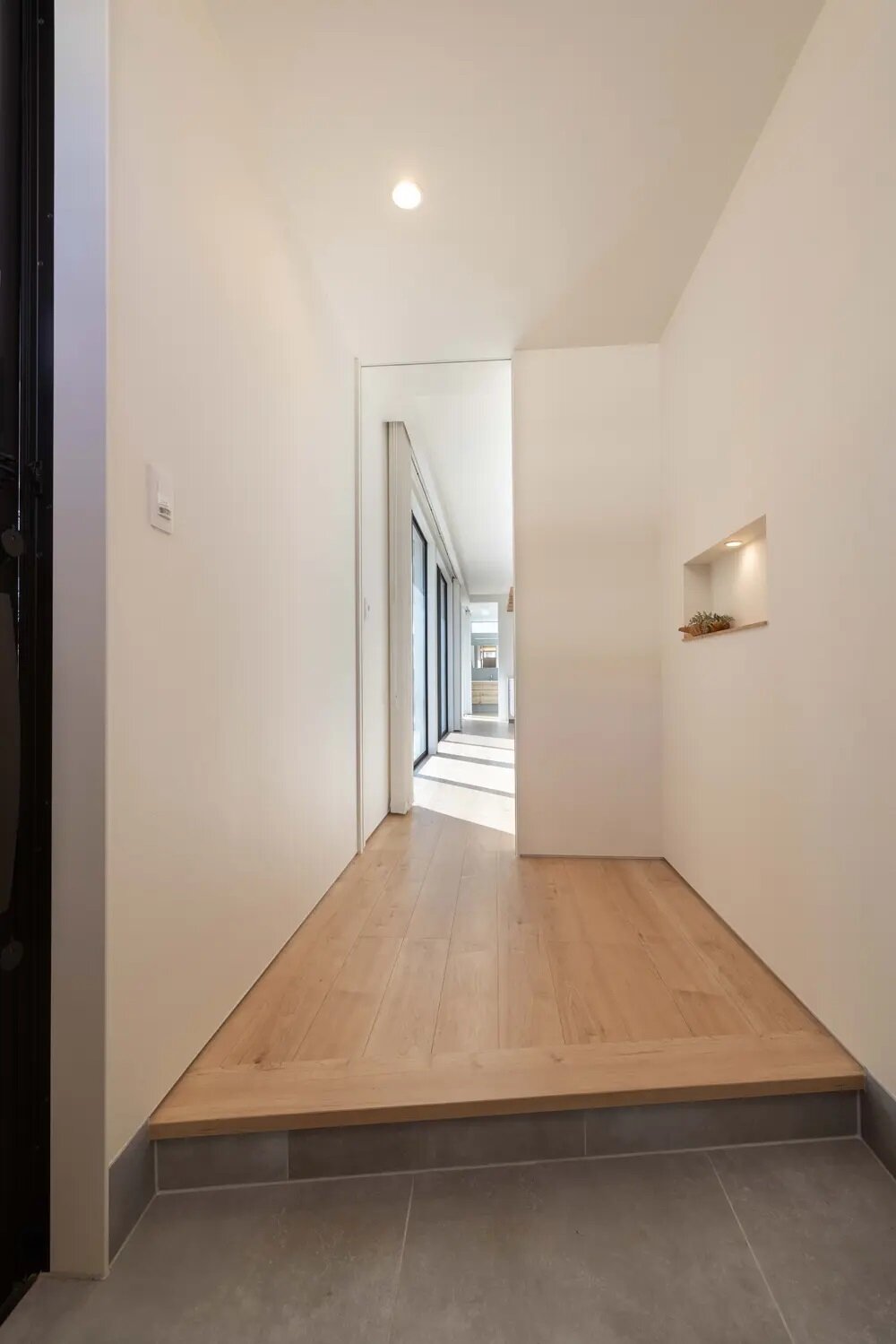 ARC style GALLERY ほぼ平屋の家 群馬県 Concept 美しい木目と優しい光が差し込むナチュラルな空間。子供部屋だけ2階に配置し、理想的な間取りを実現したほぼ平屋の家。シンプルなデザインがお好きなオーナー様ご夫婦。使い勝手やお手入れなど細かい点も考慮しつつ、優しい色味でまとめたくつろぎのインテリア。随所に間接照明を取り入れ、夜には昼間とはまた違った落ち着いた大人の雰囲気を楽しむことができる。