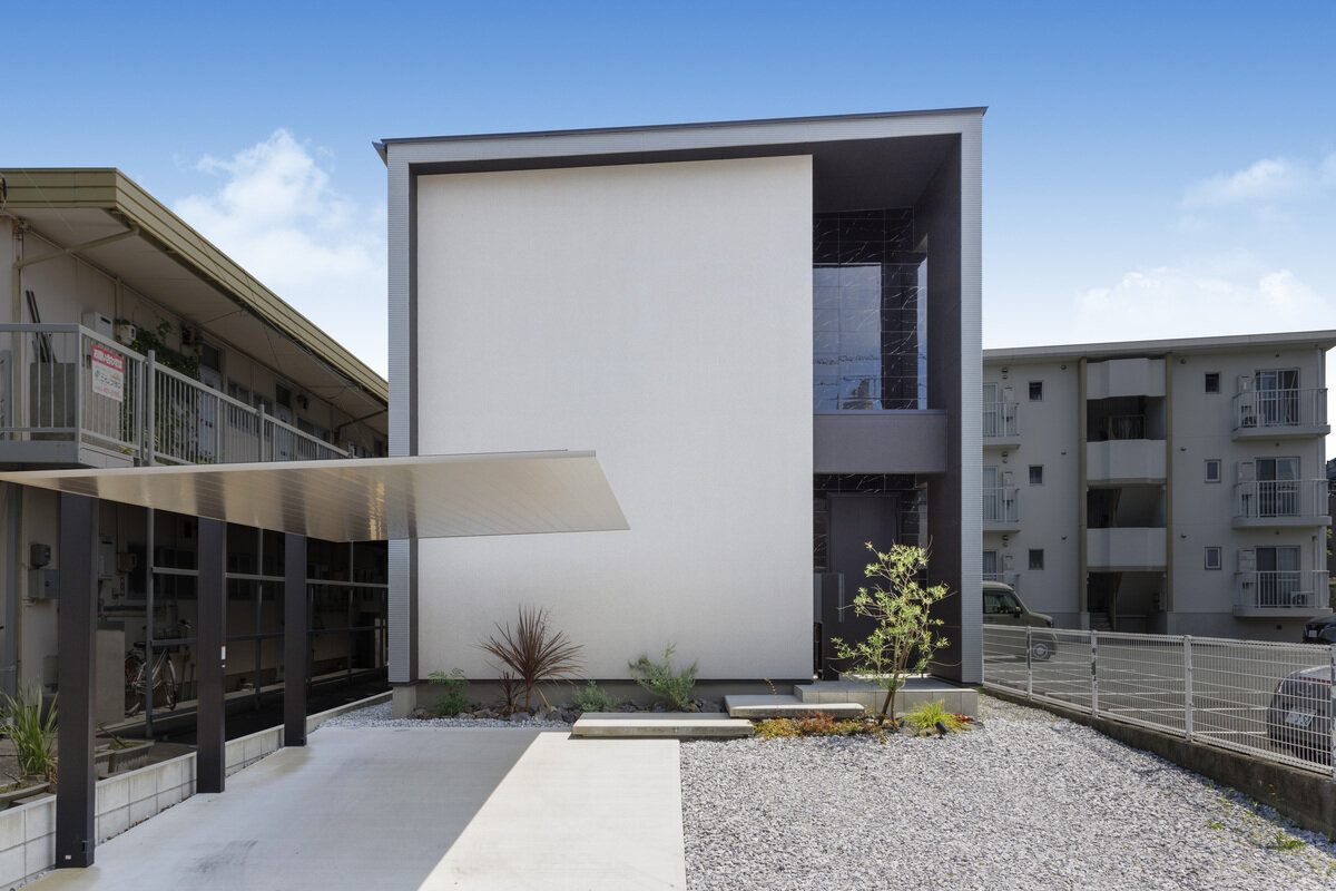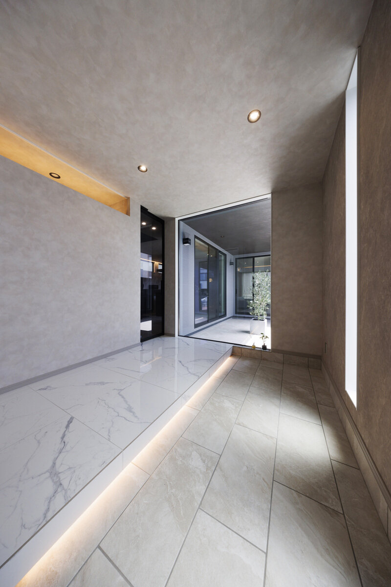 シンプルでスタイリッシュな外観と、上質で機能的な空間デザインが特徴のコの字型住宅。
