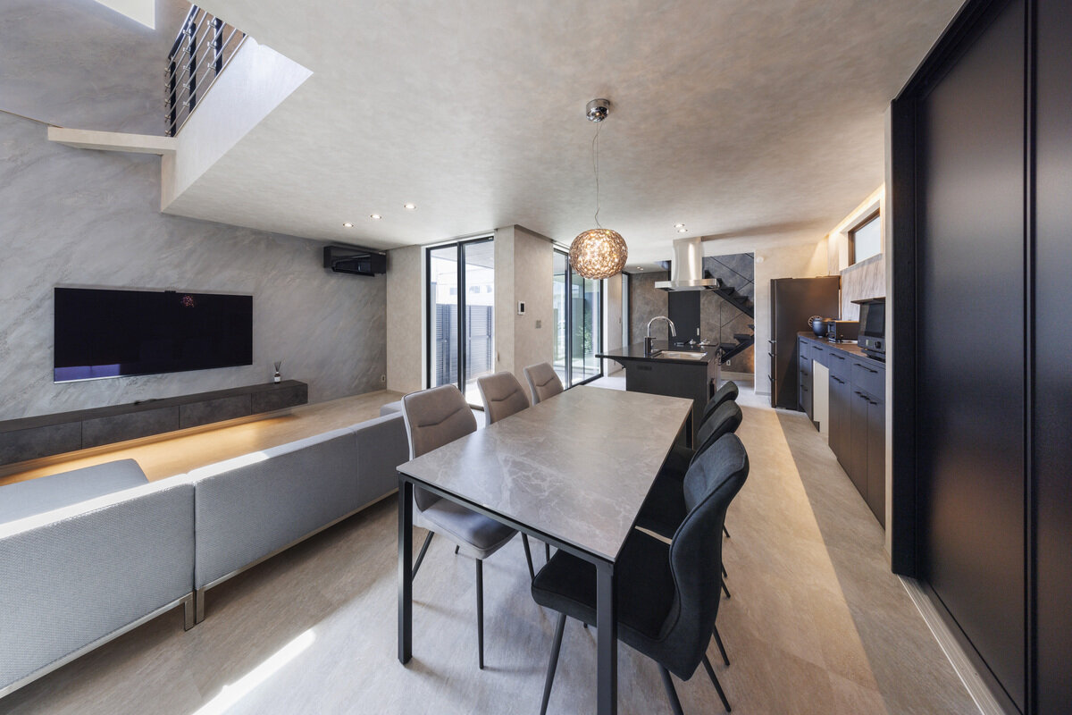 素材や照明にもこだわり、断熱・気密・換気性能に優れた快適でラグジュアリーな住まいです。