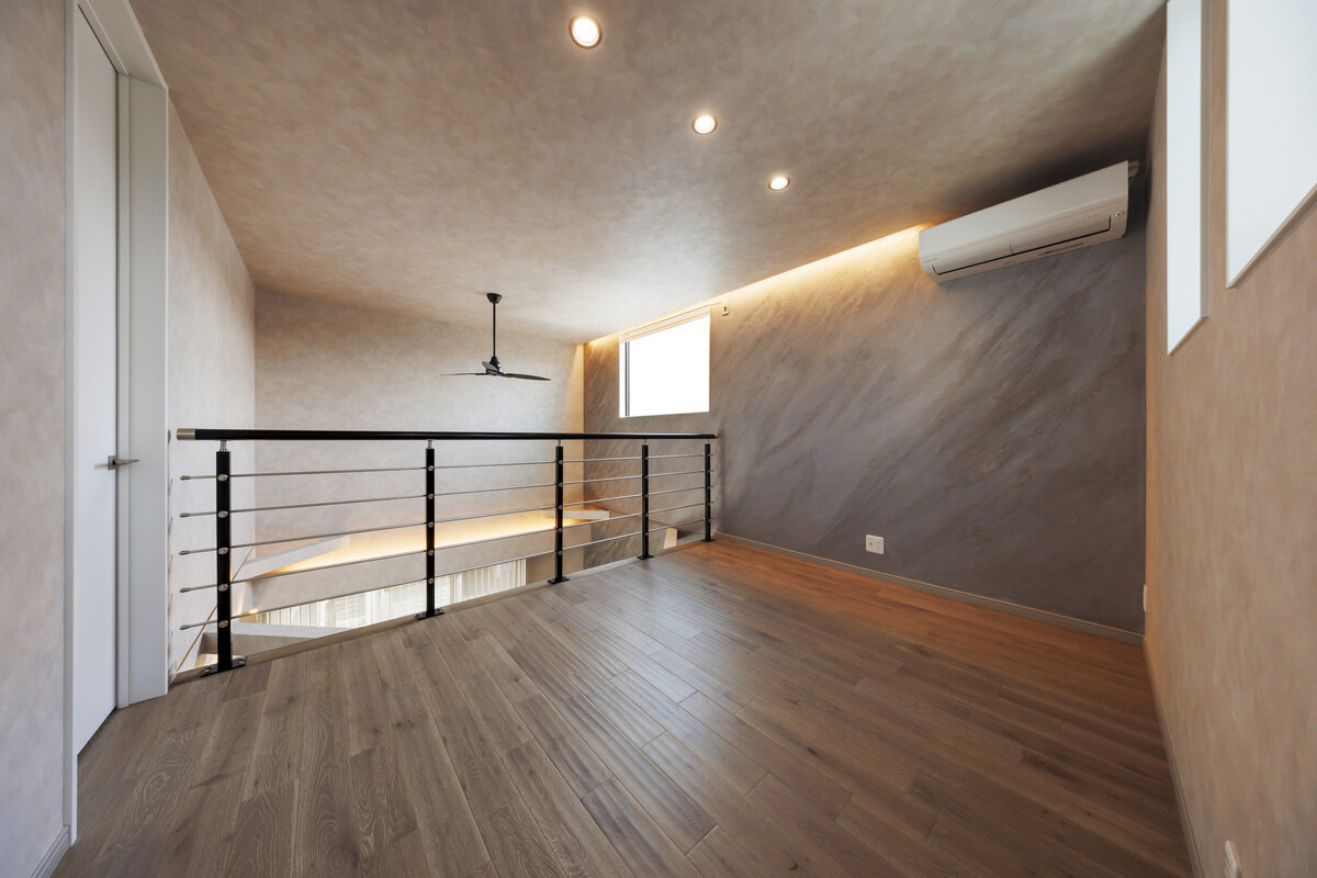 2階には多目的に使えるフリースペースと、3帖のランドリールームを配置し、家事を効率化。
