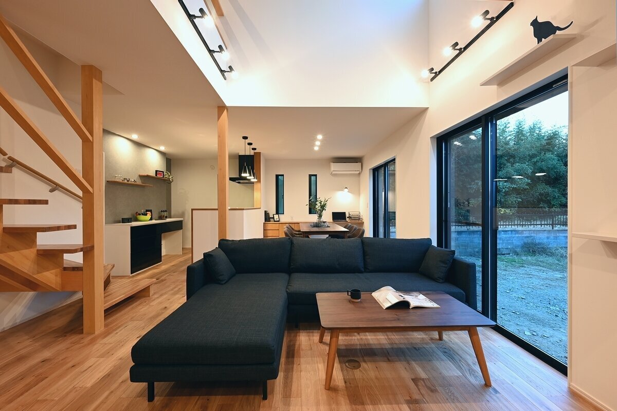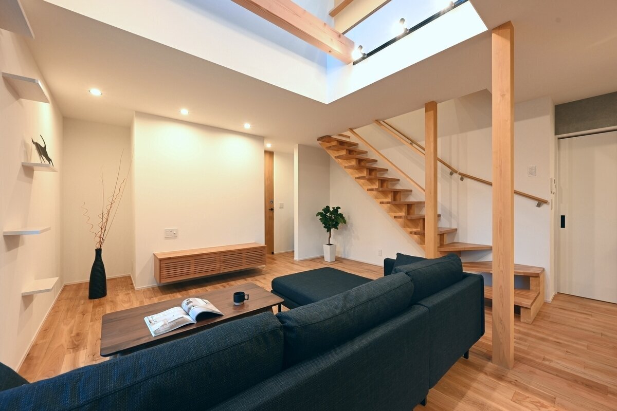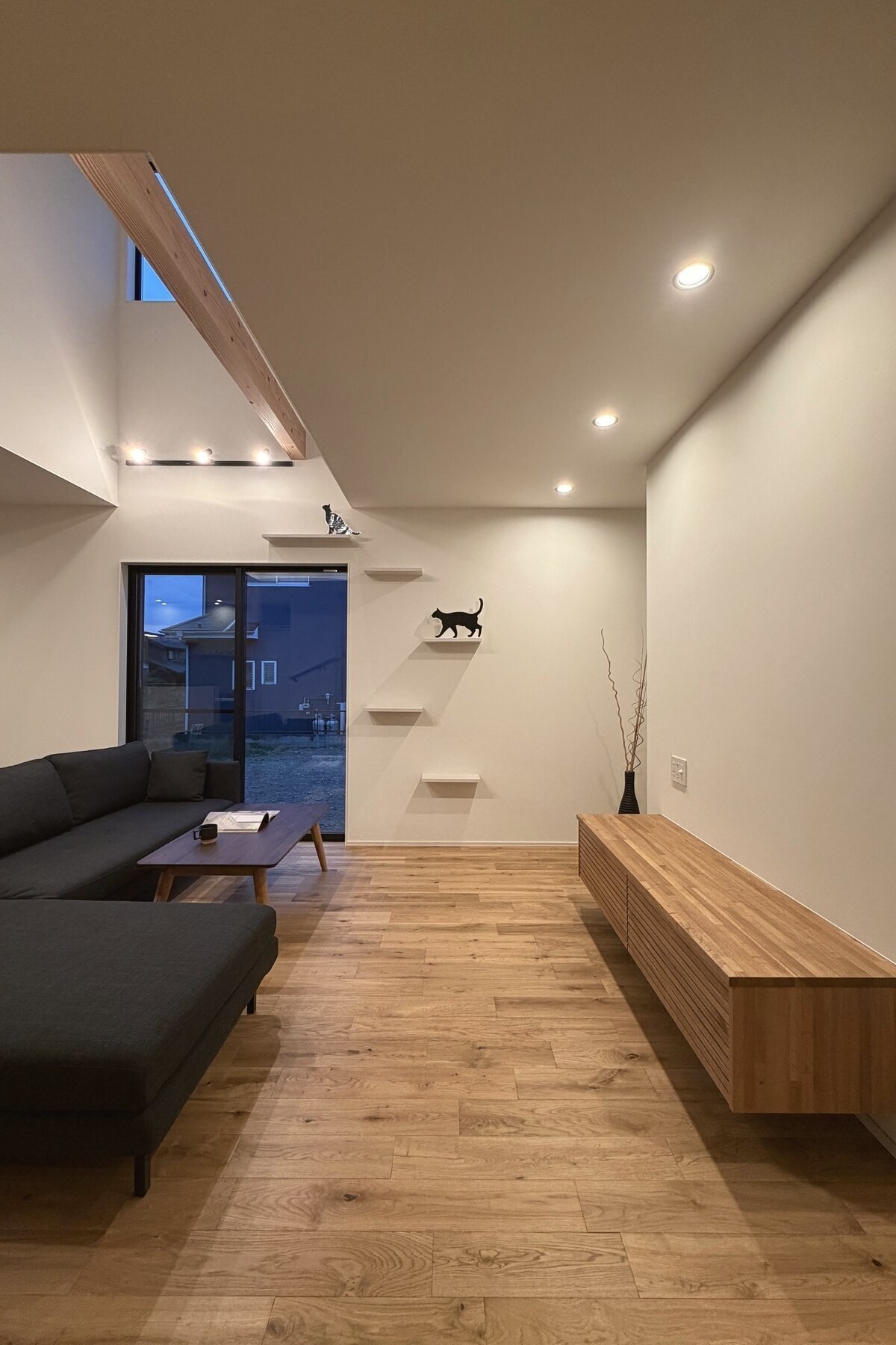 ARC style GALLERY キャットステップのある家 埼玉県 Concept リビングのキャットステップから吹抜けの梁を渡って二階へ。寝室の入り口にはキャットドアを取り付けました。愛猫と心地よく、仲良く、自由に暮らす自然素材の家です。