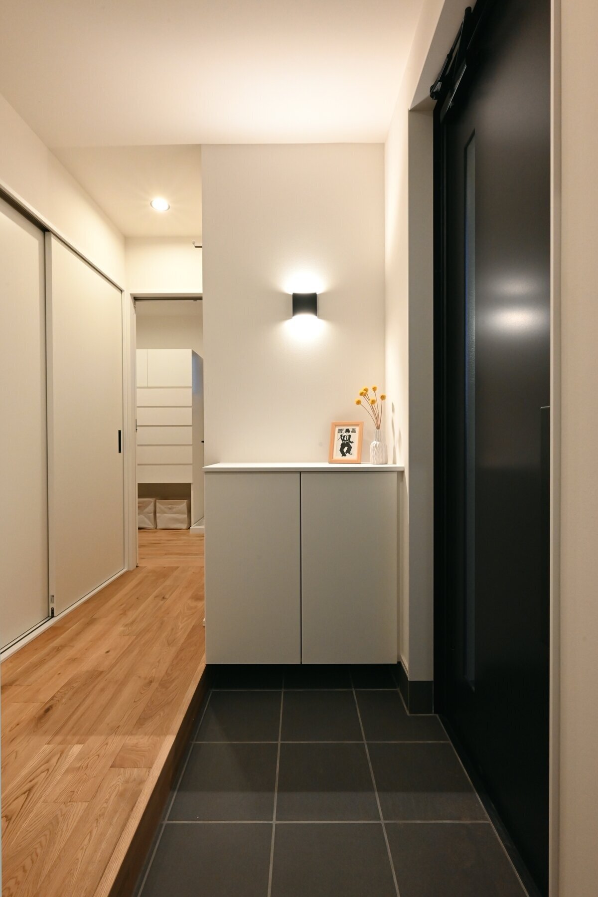 ARC style GALLERY サンルームのある 32坪の家事ラクな家 埼玉県 Concept 玄関に土間収納、キッチン裏にもたっぷり収納できるパントリー、主寝室横には室内干し用のサンルームと作業カウンターとウォークインクローゼットを計画。家事がラクに、楽しくなる工夫に富んだ32坪の家です。