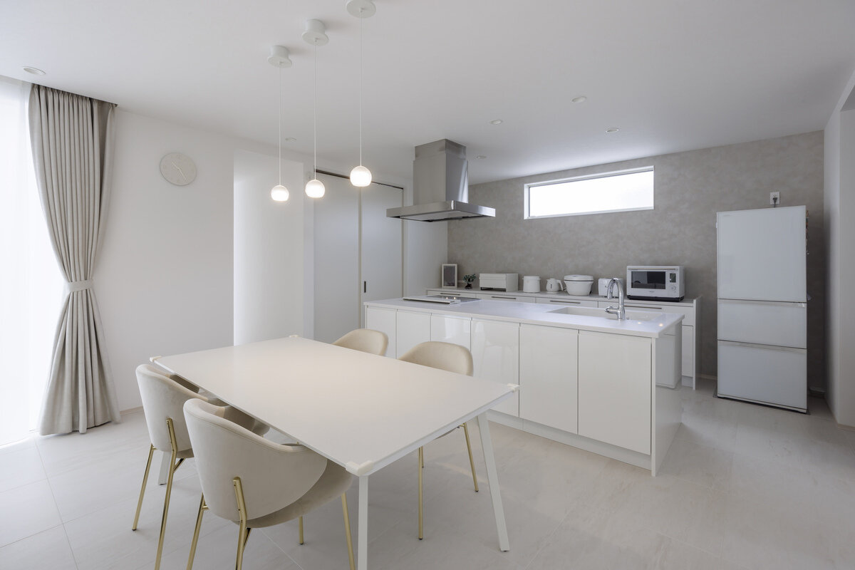 光と空間が美しく調和する、白い平屋