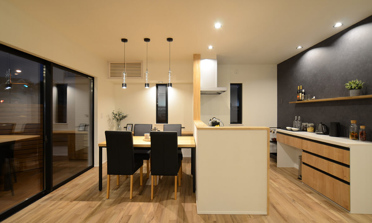 自然素材の快適空間に、お客様からご要望の多いプランをすべて盛り込んだ設計。