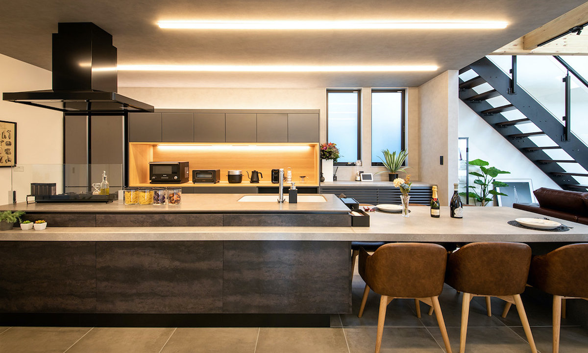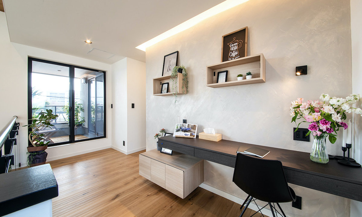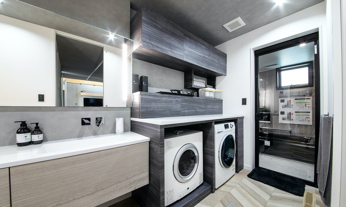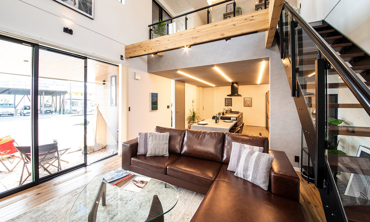 12.5畳のオール吹き抜けの開放的なリビング、ウイルスを室内に持ち込みにくくする玄関→クローゼット→洗面・浴室→LDKの清潔動線、コロナ禍で需要が増えた書斎兼テレワークルームなど、ニューノーマルな暮らしやすさにとことんこだわっています。