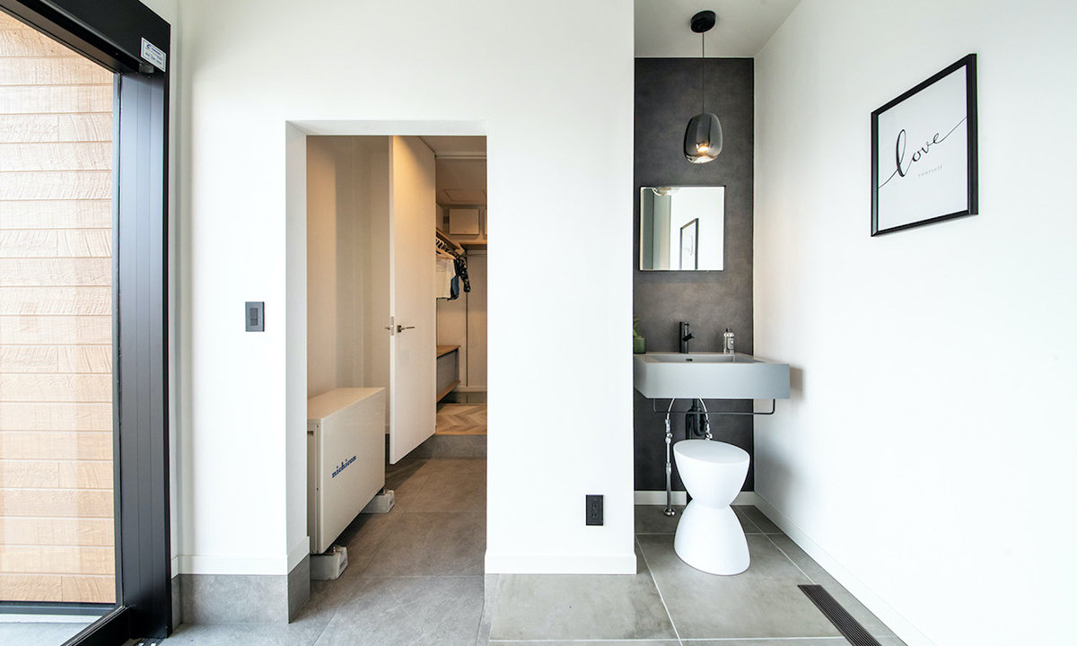 さらに沼津モデルハウスは、鈴与商事様と共同開発した「ZEH+R(ゼッチ・プラス・レジリエンス)」仕様になっており、太陽光発電システム、蓄電システム、HEMS(ホームエネルギー・マネジメント・システム)、に加え、電気自動車を家庭の電源として利用できる「VtoH」も搭載。