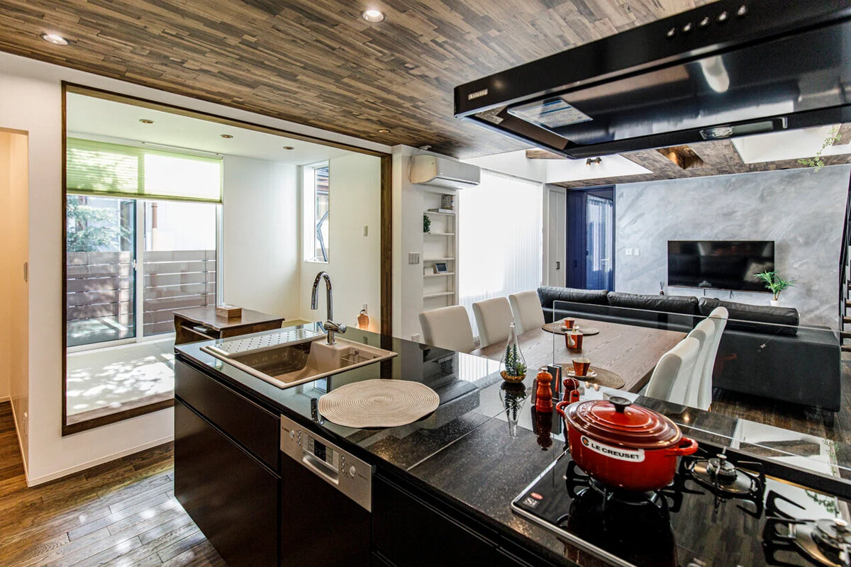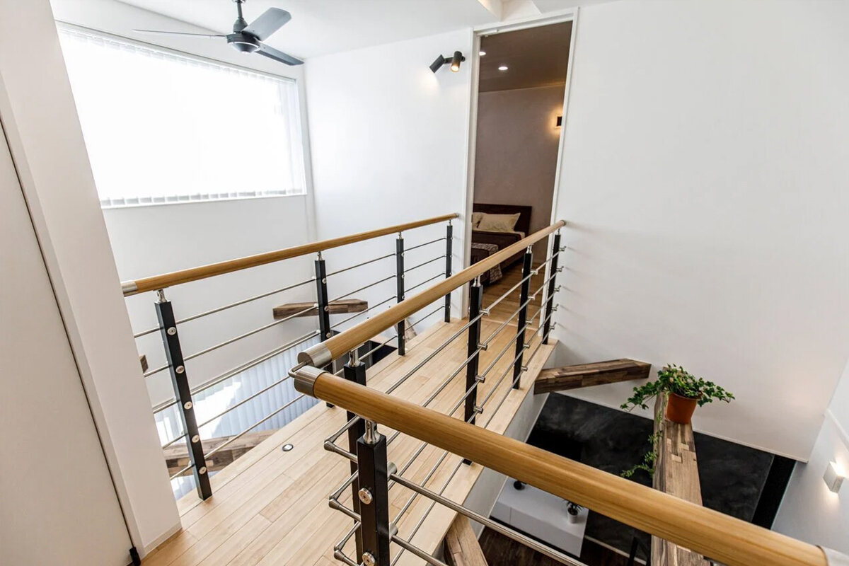 ヒラヤマホーム様 成田モデルハウス 千葉県成田市 千葉成田の老舗ビルダーとnattoku住宅がタッグを組んだモデルハウスがついに完成!キッチンからは、リビングを眺められ、床や窓、柱や壁の水平ライン、垂直ラインをきちんと揃えて設計しました。デザインはもちろん、一石三鳥なキッチン、吹き抜けの開放感たっぷりな2階の空中廊下など、大胆さも採用。リアルな今の暮らしとスペース効率を考えたモデルハウスです。