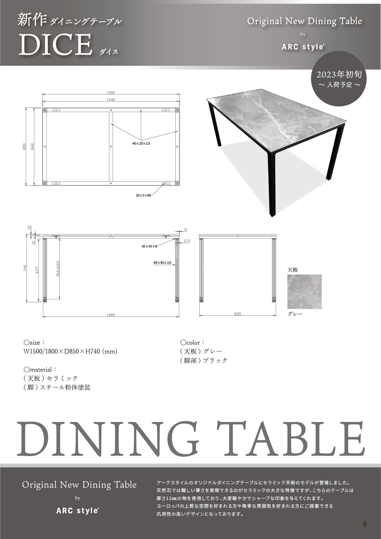 アークスタイルのオリジナルダイニングテーブルにセラミック天板のモデルが登場しました。