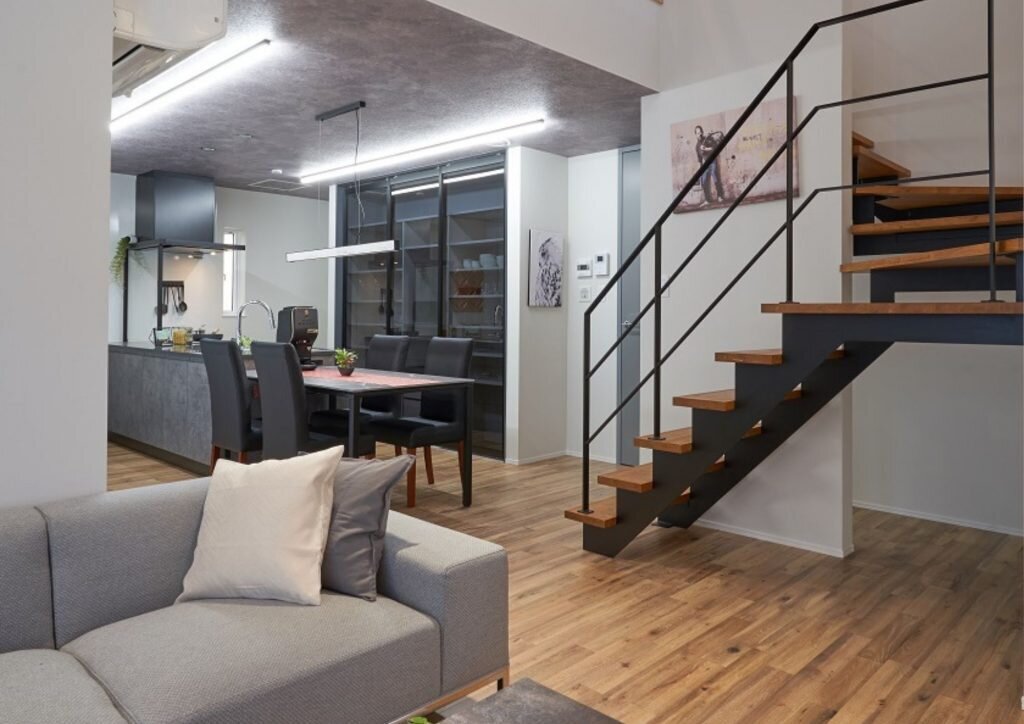 凹凸感のある独自のスクラッチ加工を施した無垢フローリングや、イタリア直輸入の漆喰『ユーロスタッコ』が自由に表情豊かな壁を演出。
