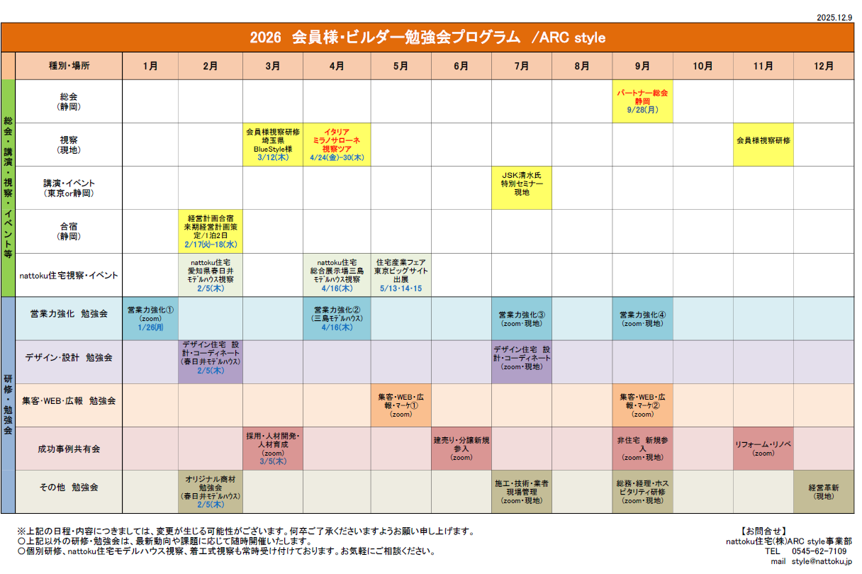 2026年 ARC style 勉強会・研修プログラムのご案内(会員様・ビルダー様向け)